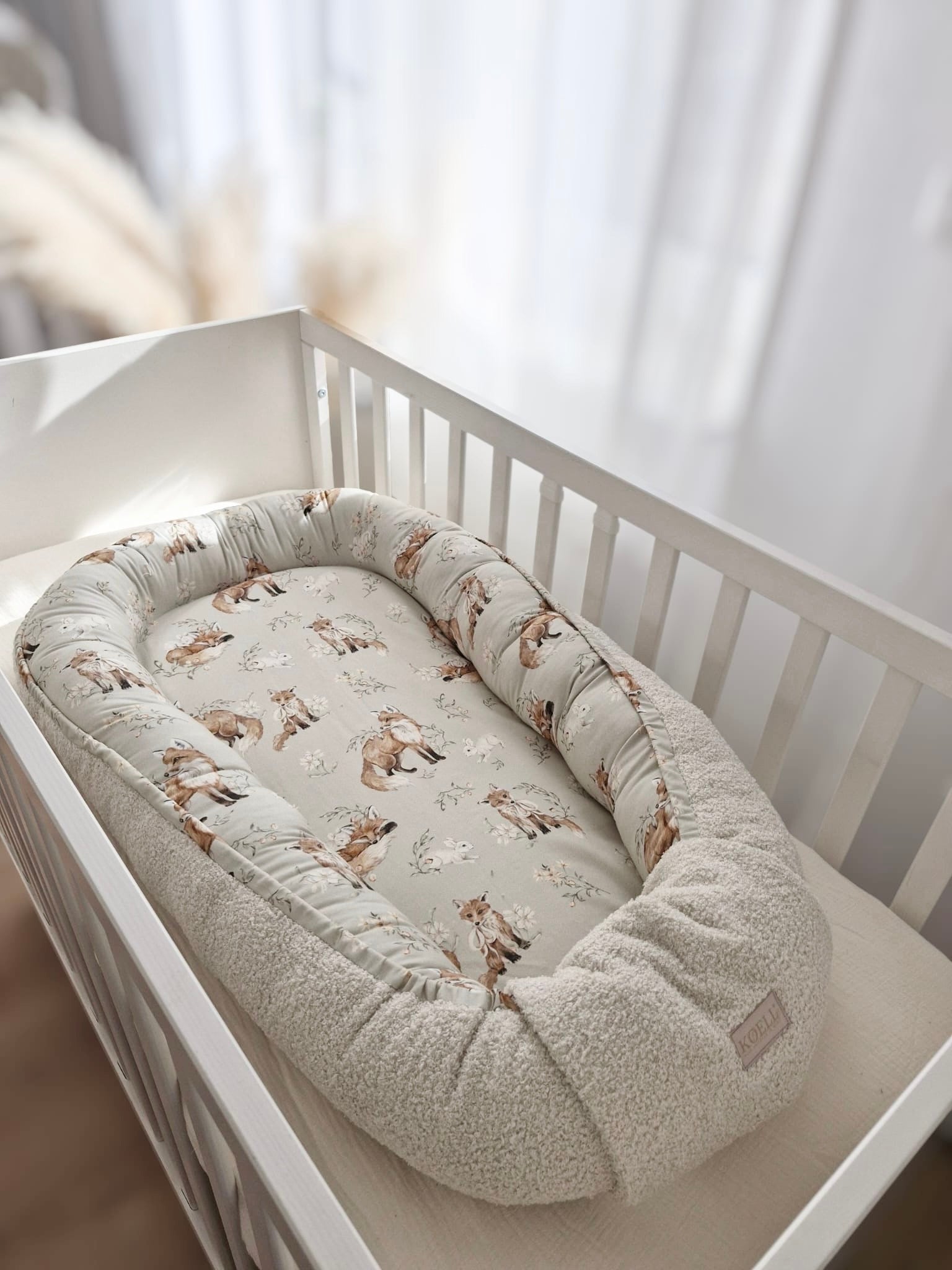 • Stylisches Design: Die Kombination aus dem trendigen Teddy-Stoff und dem niedlichen Fuchs-Muster ist ein Hingucker in jedem Babyzimmer.
