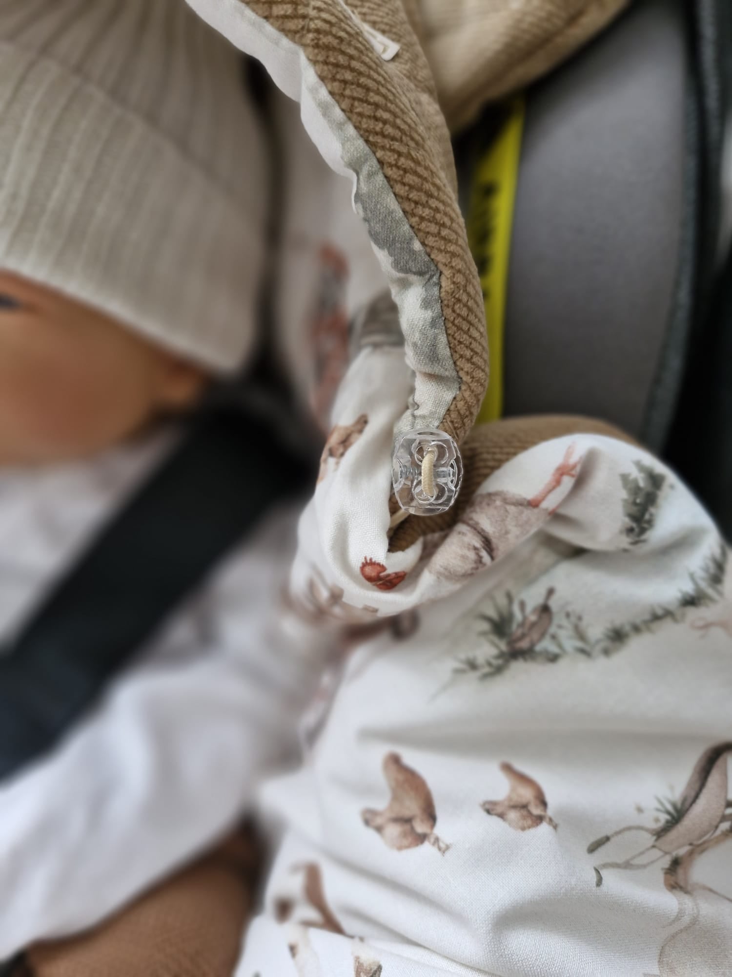 Mit einem TOG-Wert von 3 sorgt die Decke für zuverlässige Wärmeisolierung. Dank der Maße von 90x90 cm passt sie perfekt in jede Babyschale und lässt sich ebenso vielseitig im Kinderwagen oder zu Hause nutzen.