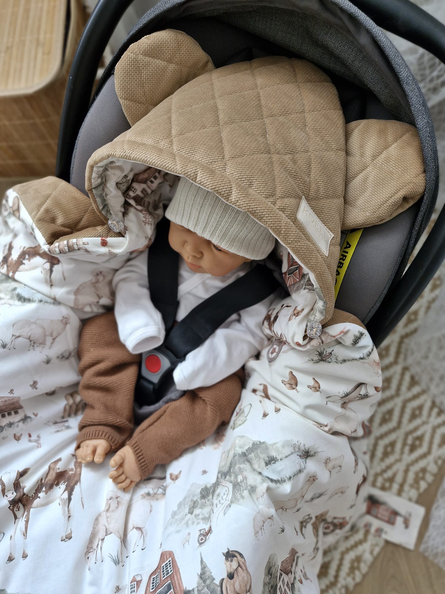 Die hochwertige Autoschale-Decke kombiniert eleganten Samt außen mit weicher Premium-Baumwolle innen. So entsteht eine Decke, die nicht nur optisch überzeugt, sondern auch optimalen Komfort und angenehme Wärme für Ihr Baby bietet – ideal für die kalte Jahreszeit.