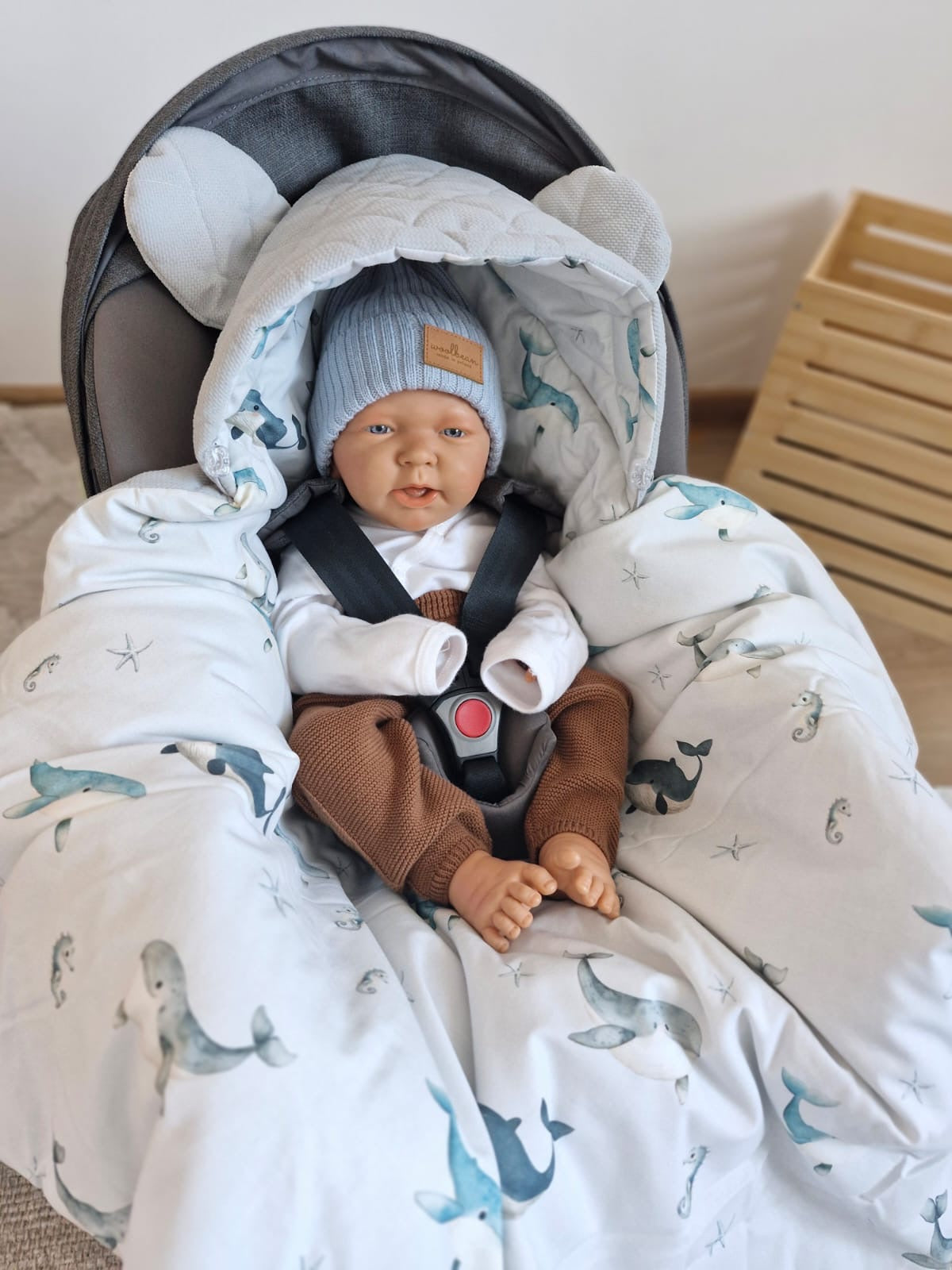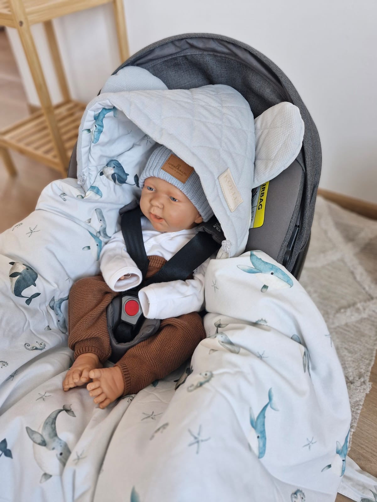 Die hochwertige Autoschale-Decke kombiniert eleganten Samt außen mit weicher Premium-Baumwolle innen. So entsteht eine Decke, die nicht nur optisch überzeugt, sondern auch optimalen Komfort und angenehme Wärme für Ihr Baby bietet – ideal für die kalte Jahreszeit.