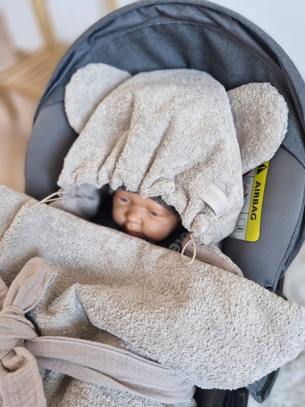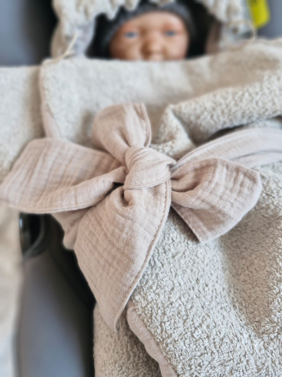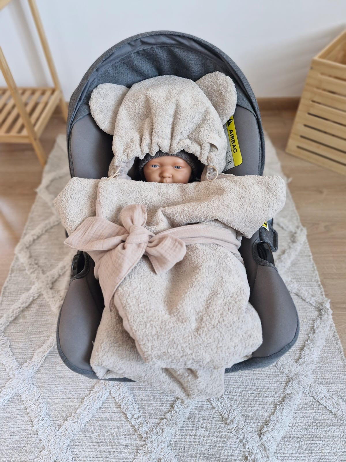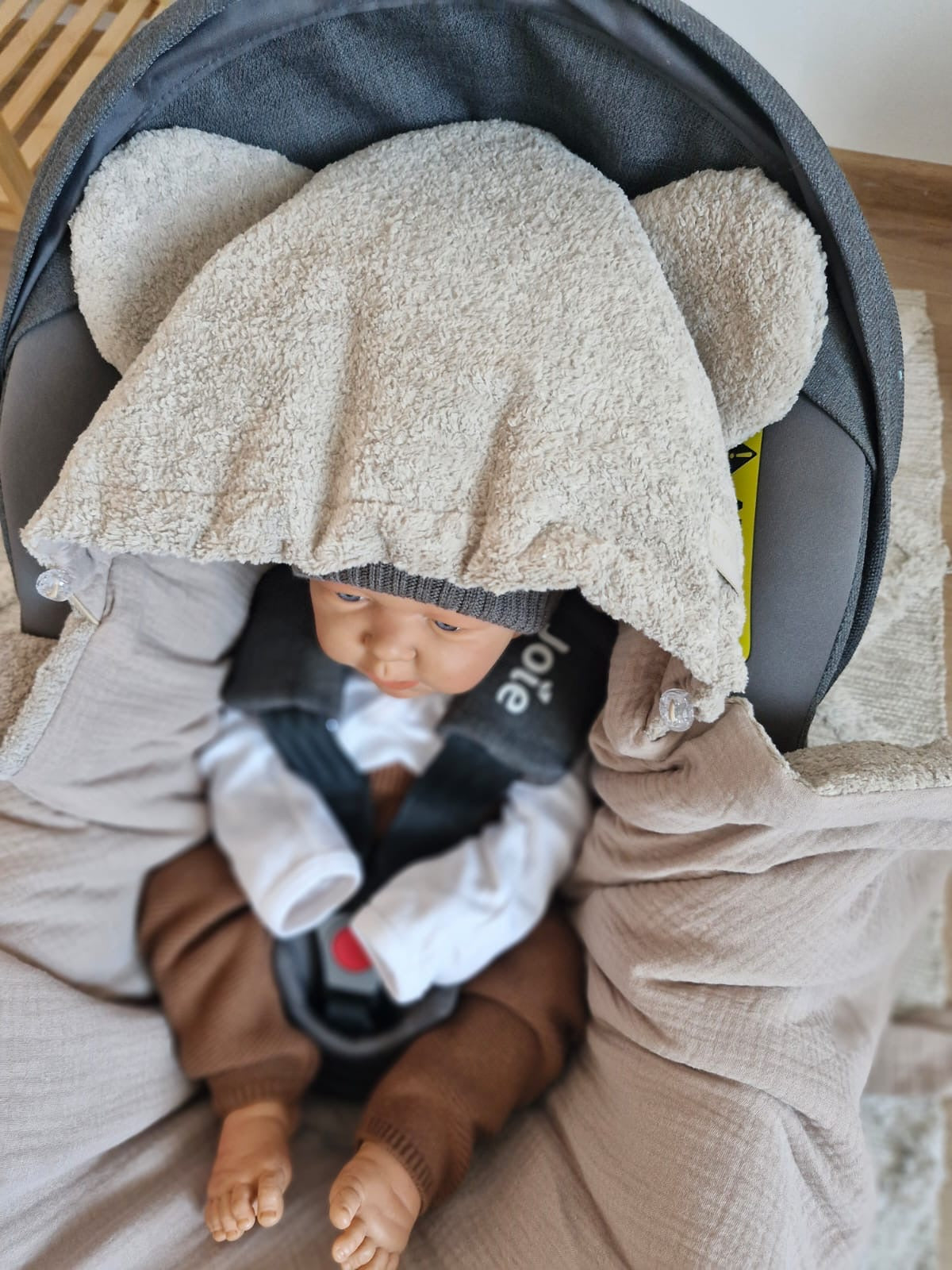Die hochwertige Autoschale-Decke kombiniert kuscheliges Kunstfell außen mit weichem, atmungsaktivem Musselin innen. Sie sorgt für angenehme Wärme und höchsten Komfort, ideal für die kalte Jahreszeit.