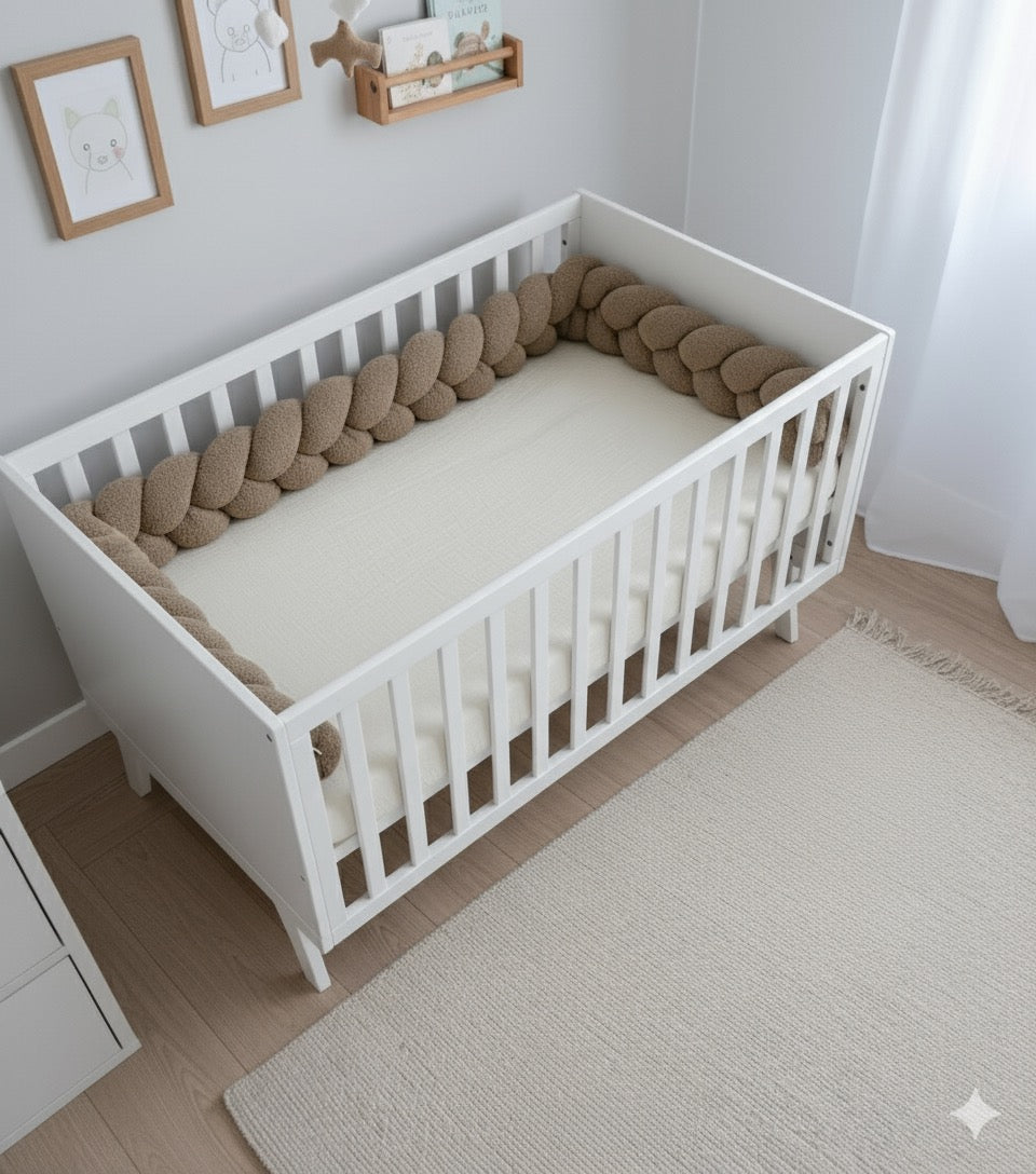 Geben Sie dem Babybett mit unserer Bettschlange aus Kunstfell einen Hauch von Raffinesse und Komfort. Eine stilvolle und praktische Ergänzung, die nicht nur den Schlafkomfort fördert, sondern auch das Kinderzimmer mit subtiler Eleganz bereichert.