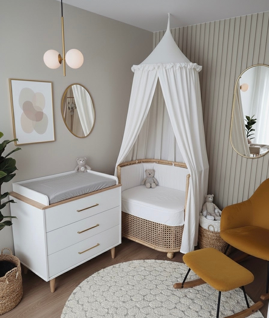 Verleihen Sie dem Kinderzimmer mit unserem Musselin-Baldachin eine zeitlose Eleganz und schaffen Sie einen Ort der Ruhe und Inspiration. Eine stilvolle Ergänzung, die nicht nur für Komfort sorgt, sondern auch den Raum mit zarter Schönheit bereichert.