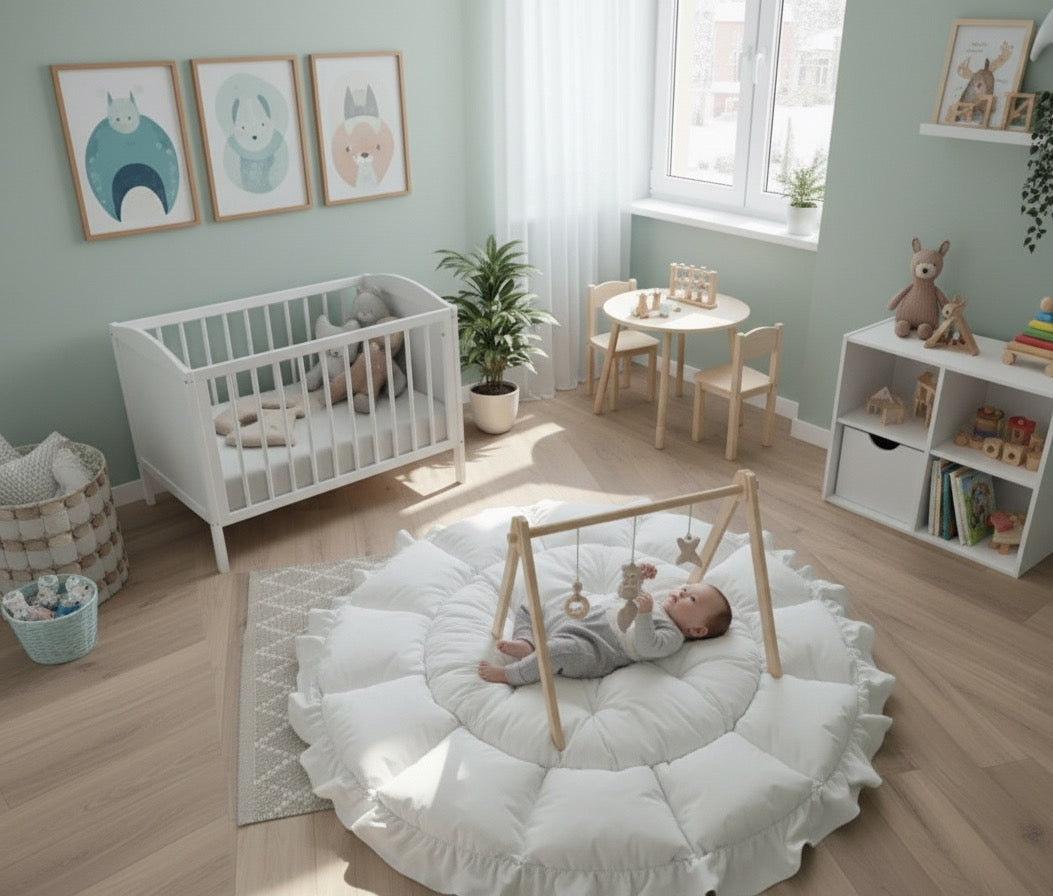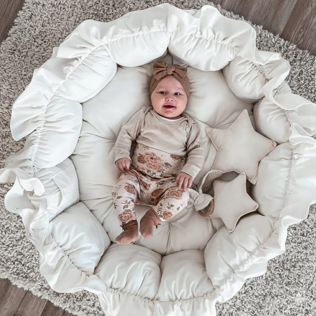 Erweitern Sie die Spiel- und Schlafumgebung Ihres Kindes mit unsere 2-in-1 Spielmatte, der Funktionalität und Sicherheit vereint. Dieses hochwertige Produkt ist konzipiert für die gesamte Frühphase des Kindes .von Geburt an.