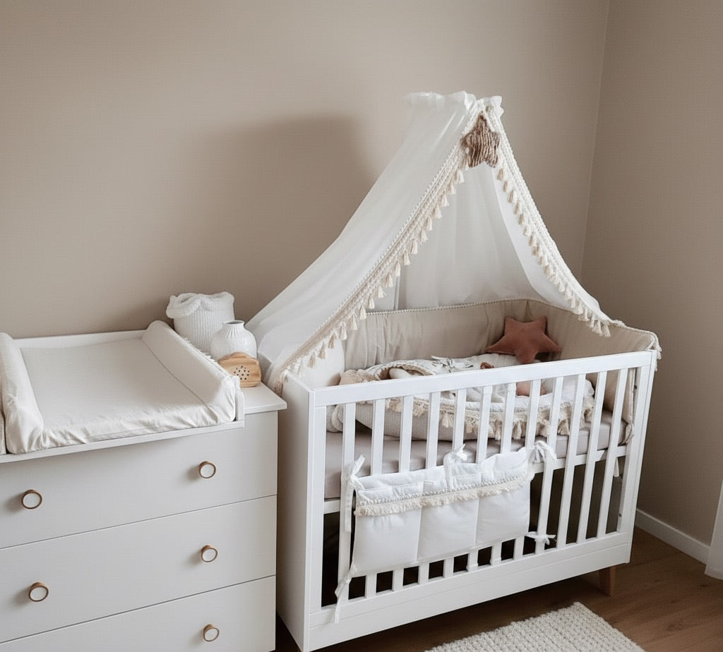 Gönnen Sie Ihrem Kind einen Rückzugsort voller Magie und Stil! Mit unserem Boho-Betthimmel schaffen Sie einen Ort, an dem Fantasie und Geborgenheit Hand in Hand gehen. Bestellen Sie jetzt und verwandeln Sie das Kinderzimmer in ein märchenhaftes Paradies!