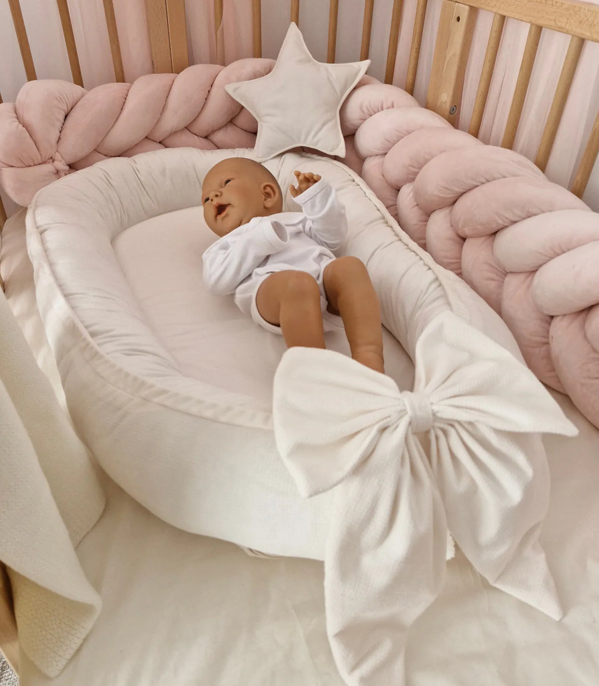 Schützen Sie Ihr Baby stilvoll und komfortabel – mit unserer geflochtenen Samt-Bettschlange im Fischgrätenzopf!
