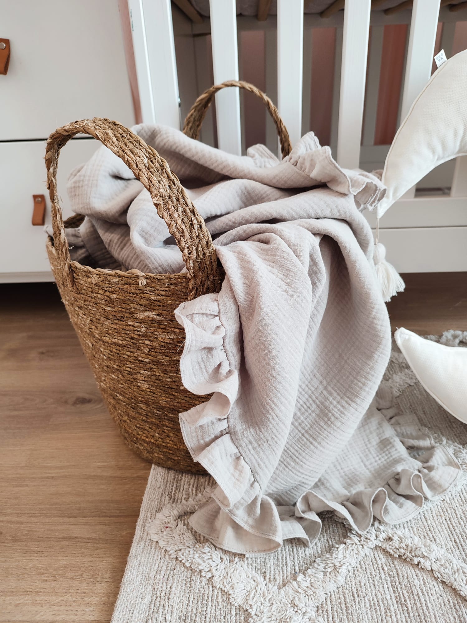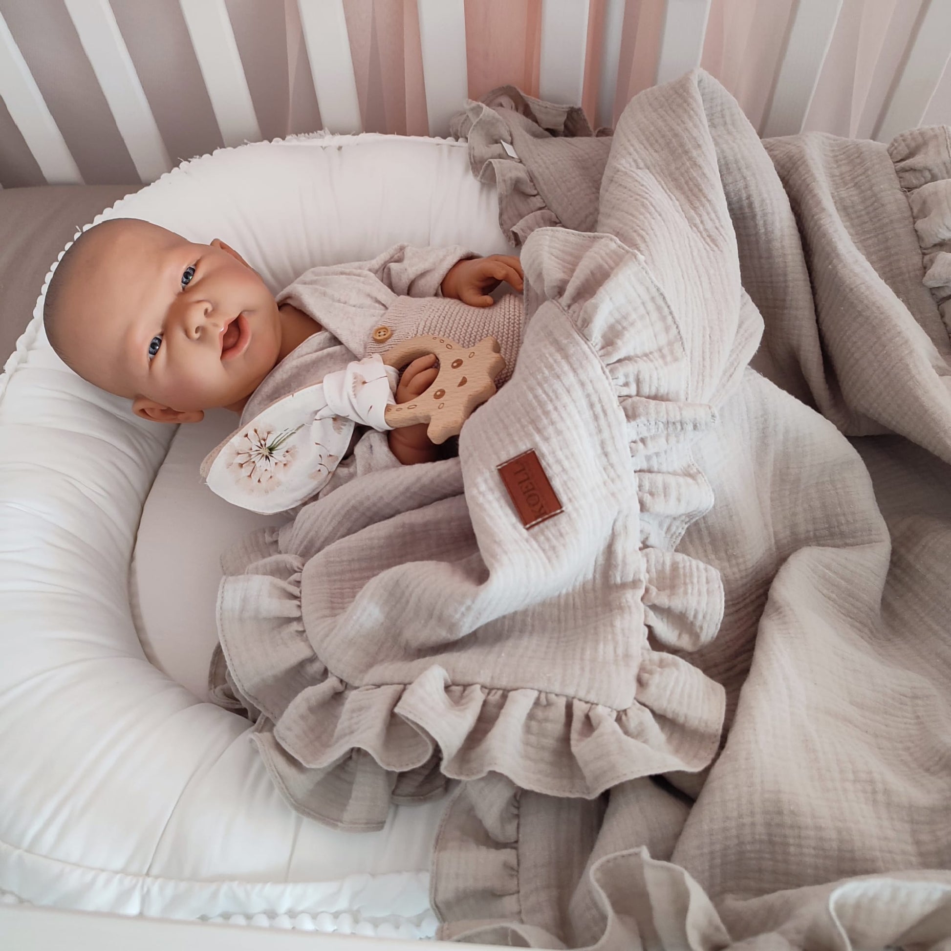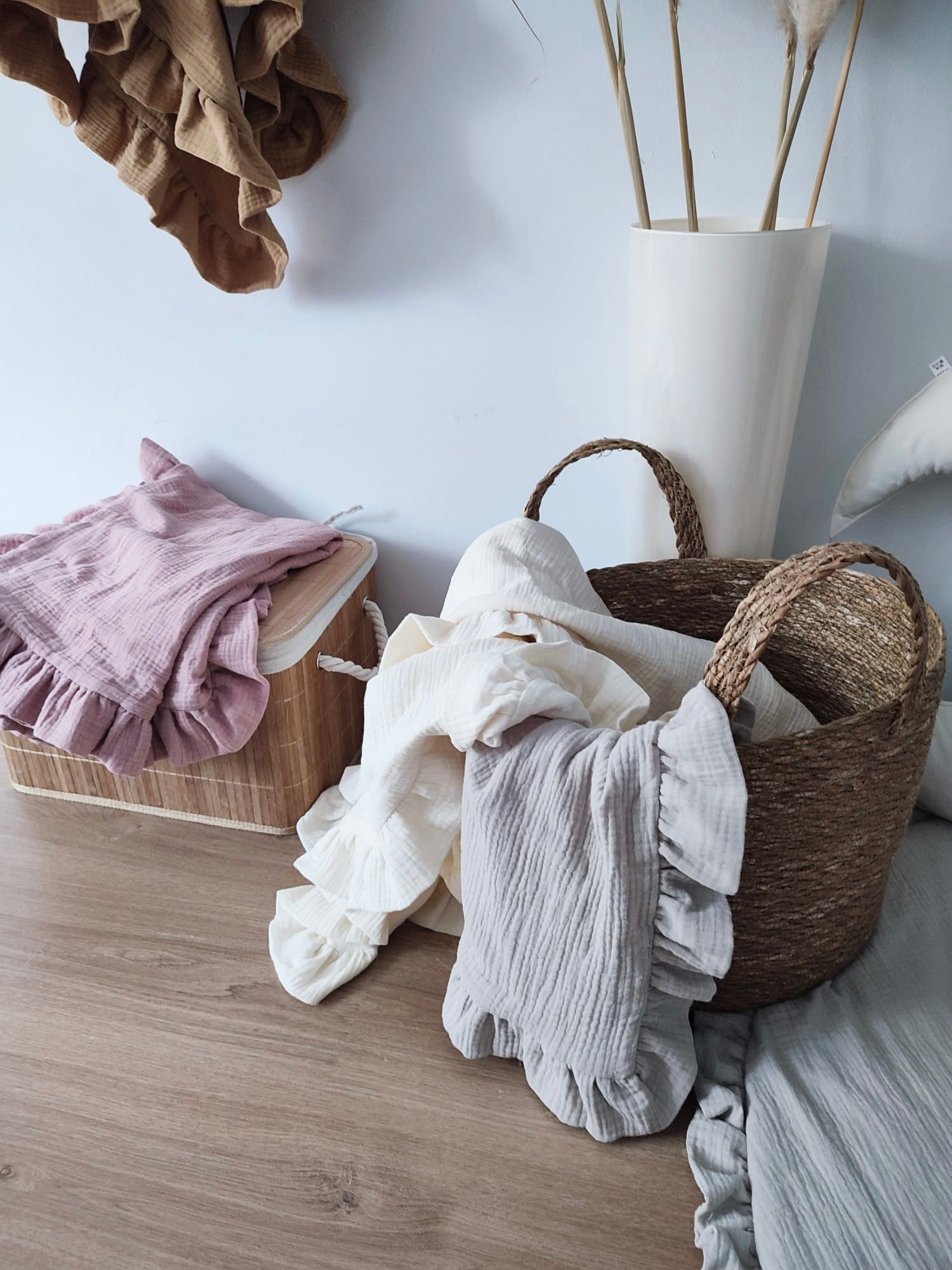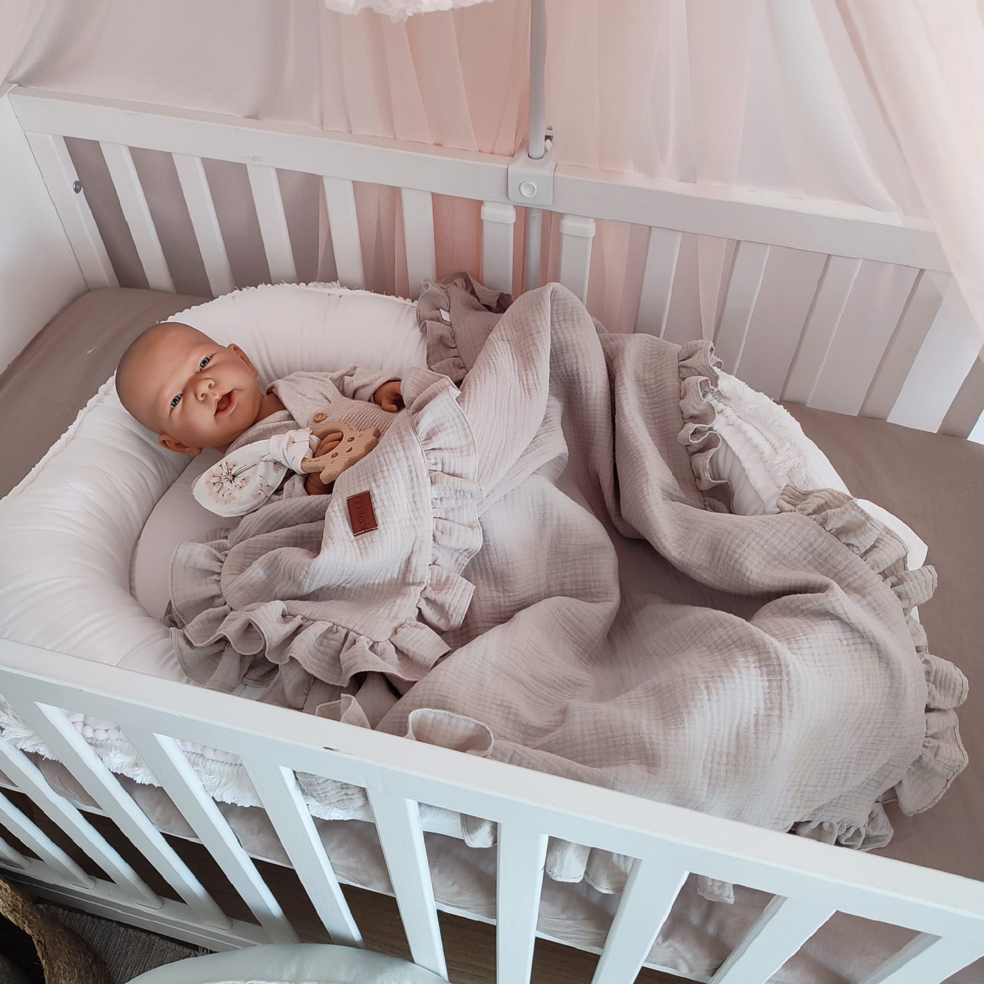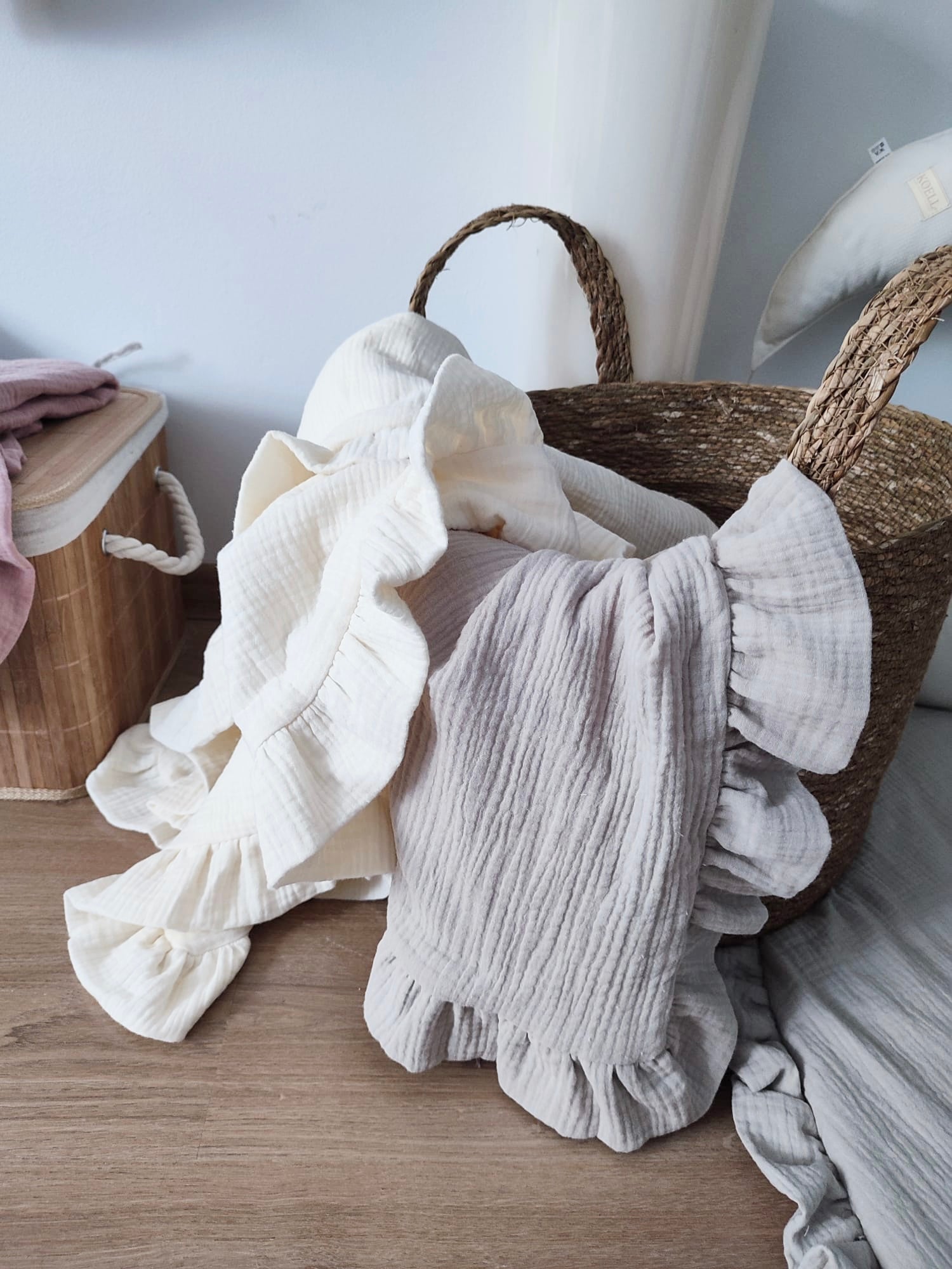 Schenken Sie Ihrem Baby das Beste – entscheiden Sie sich für die Musselin-Babydecke mit Rüschen. Ein unverzichtbares Accessoire, das Wärme, Geborgenheit und ein Hauch von Luxus in den Alltag bringt.