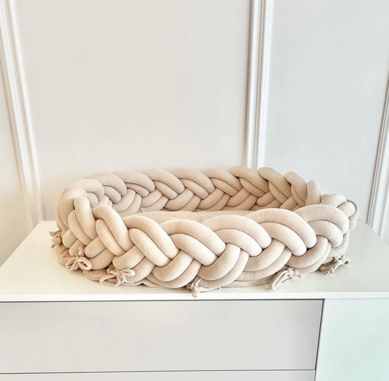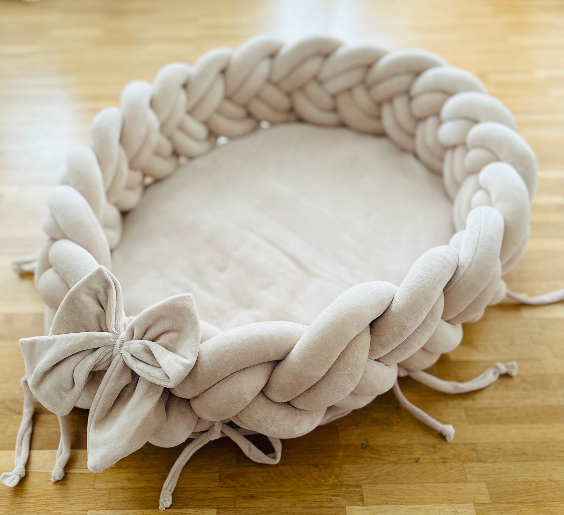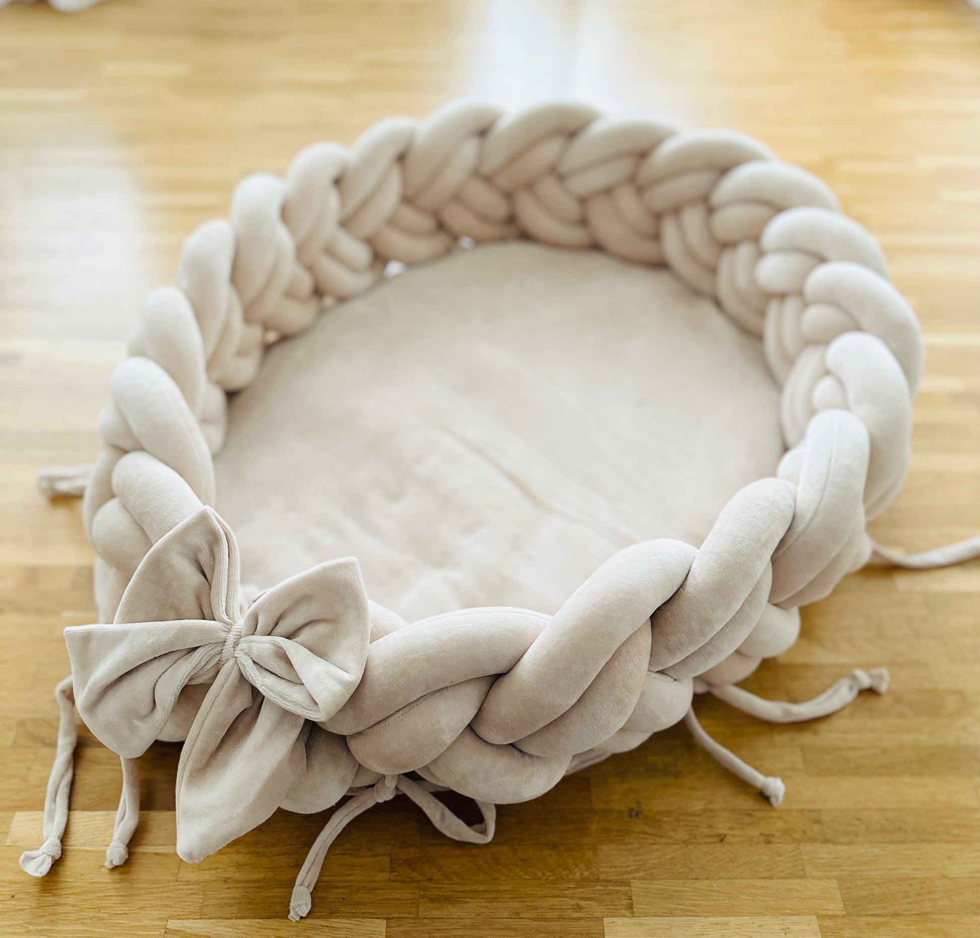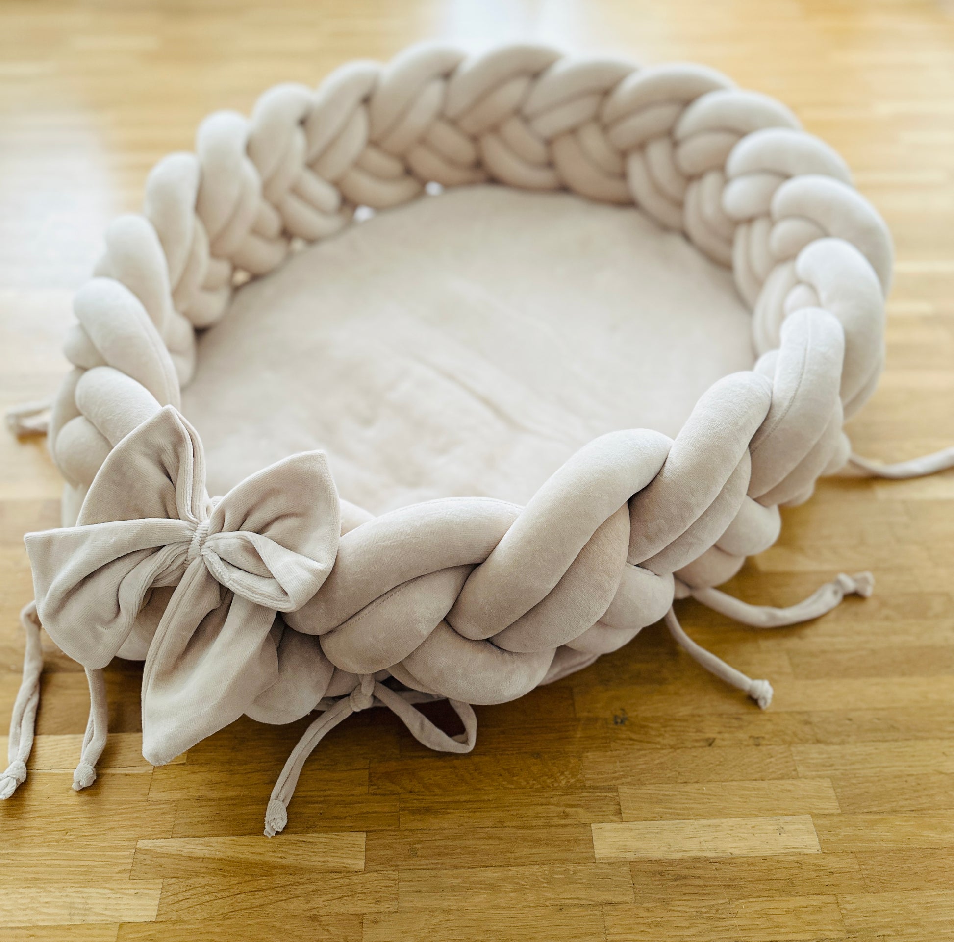 Bieten Sie Ihrem Neugeborenen den ultimativen Komfort und Sicherheit mit unserem Samtnest, einer abnehmbaren Bettschlange und Babynest. Dieses exklusiv gestaltete Produkt schafft nicht nur einen geschützten Schlafplatz, sondern verleiht auch dem Babybett eine luxuriöse und gemütliche Atmosphäre.